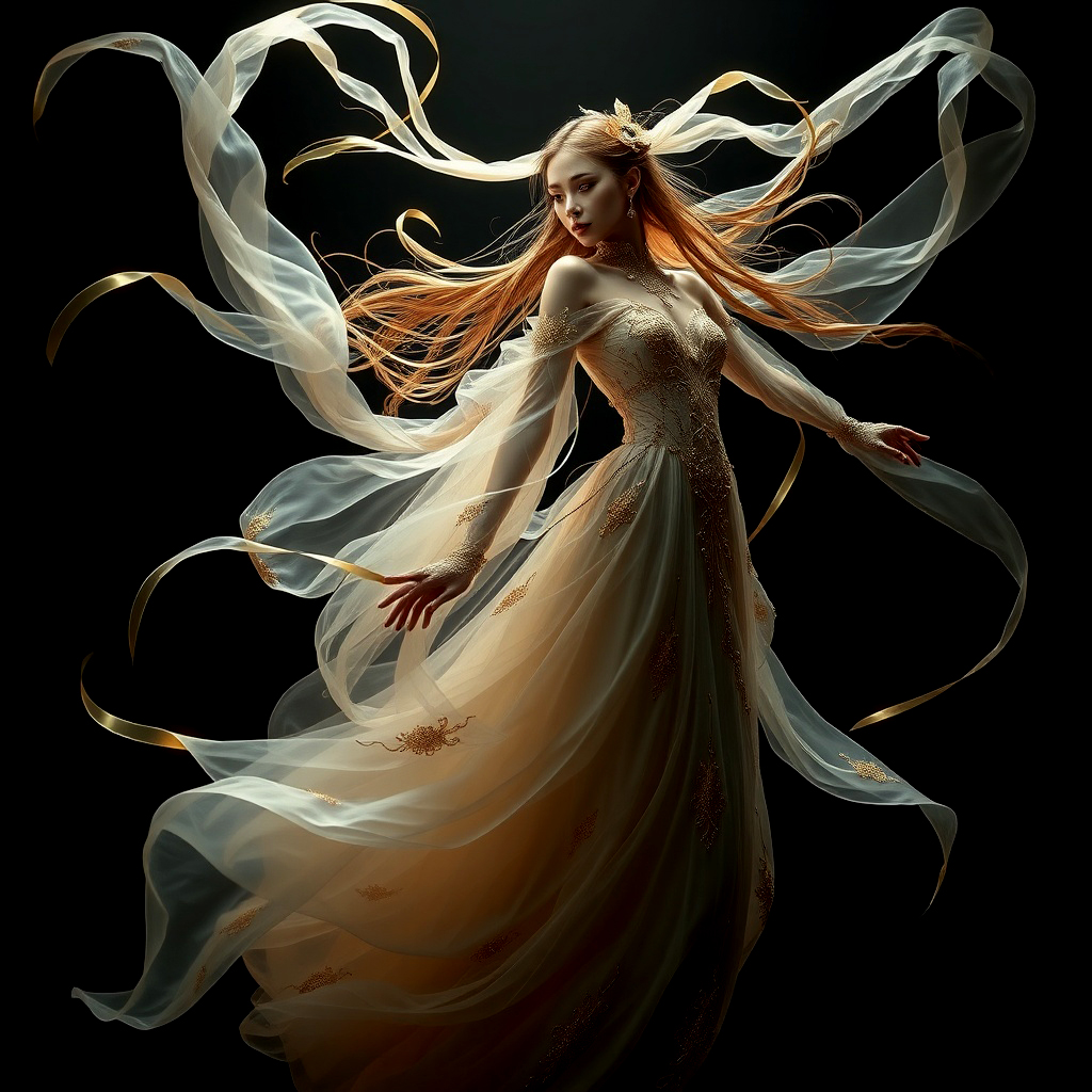 A mystical realm where fashion becomes life. Each spirit is born from celestial fabrics, wearing impossible couture woven from light, silk, and cosmic threads. These entities are not merely characters…
